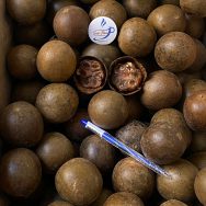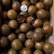 Trái cỡ trung, vỏ khô cứng, màu nâu vàng đẹp mắt.