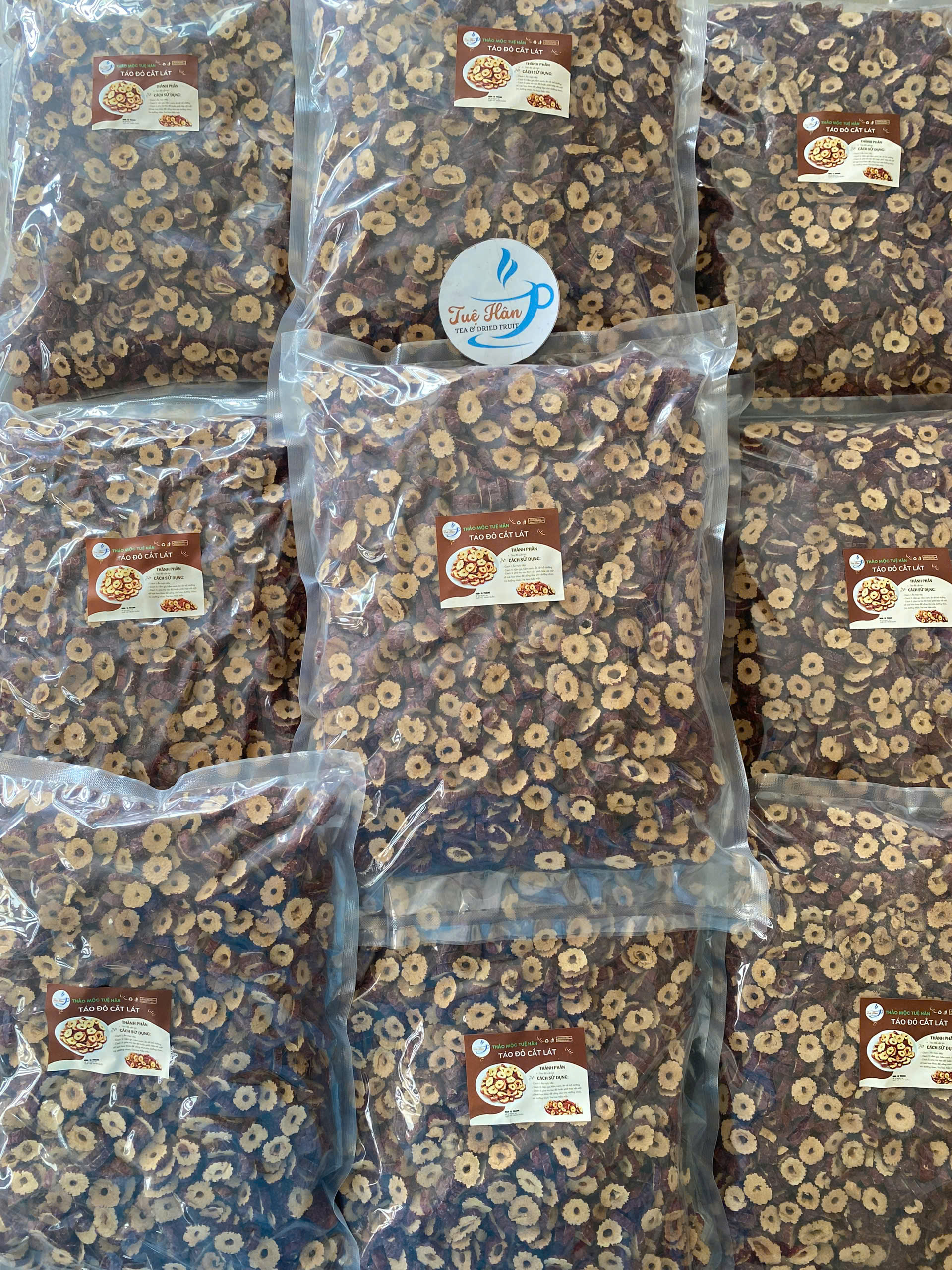 Lát táo khô ráo, ít vụn, dễ bảo quản và rất thuận tiện cho việc đóng gói hoặc chế biến số lượng lớn. Phù hợp để pha trà, nấu chè, hầm canh hoặc sử dụng như món ăn vặt lành mạnh.